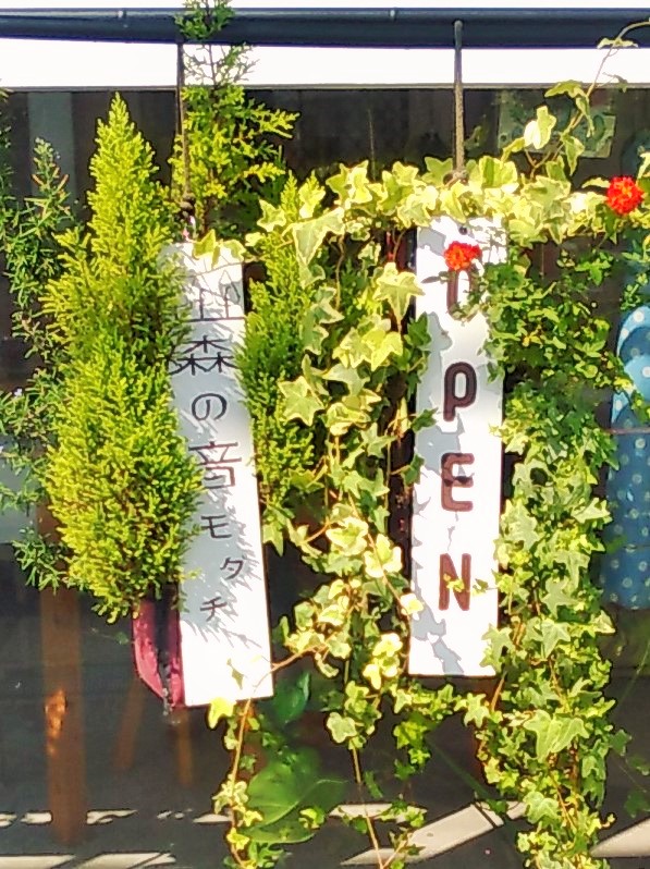 緑や花の看板で、自然に柔らかく、看板を目立たせる。